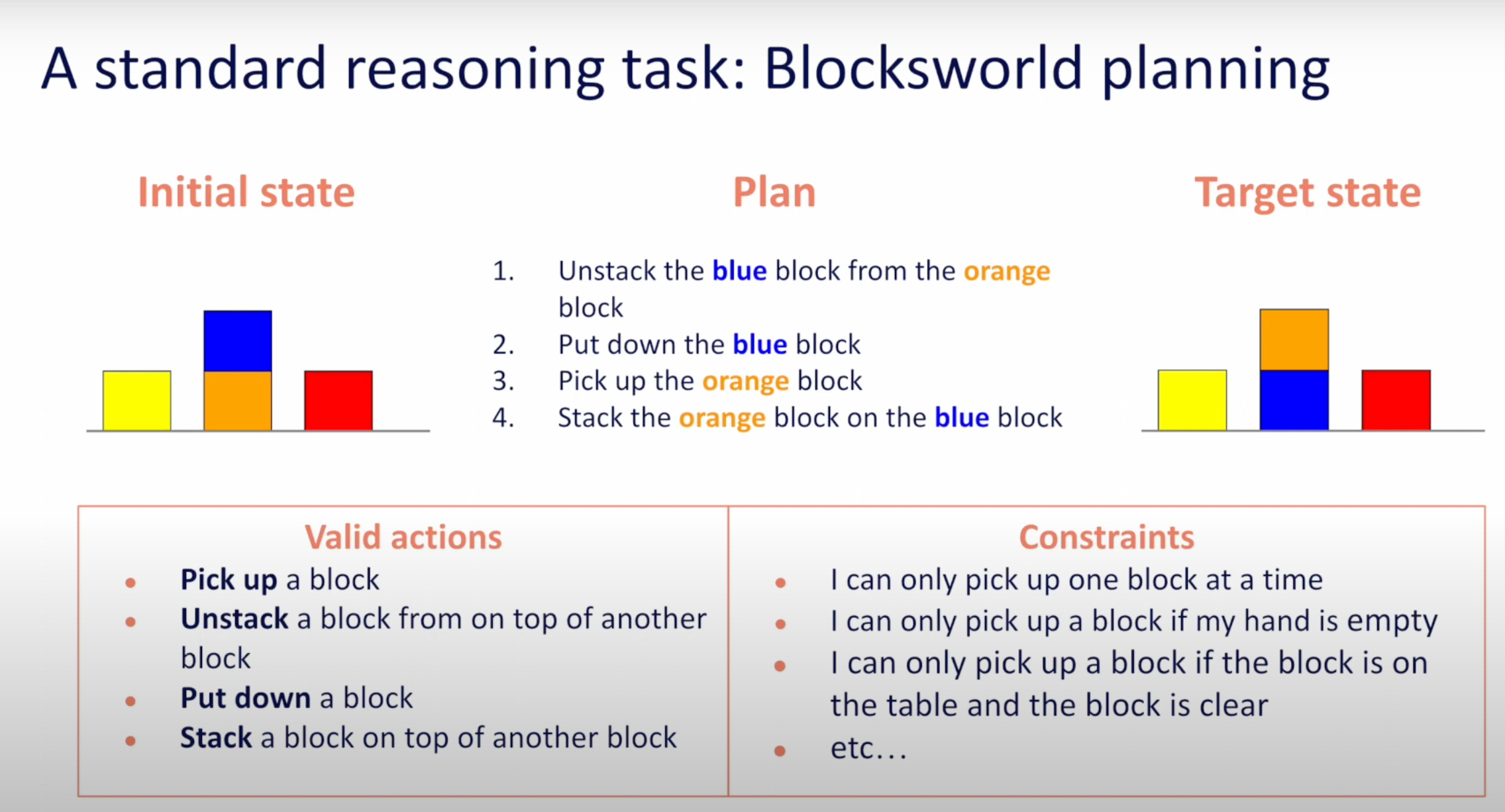 Planning is a great place to study reasoning, because it's a formal framework, and plans can be compared and measured, and you can clearly say whether a plan is valid or not. In many other areas of reasoning, things are sometimes a bit more hazy.